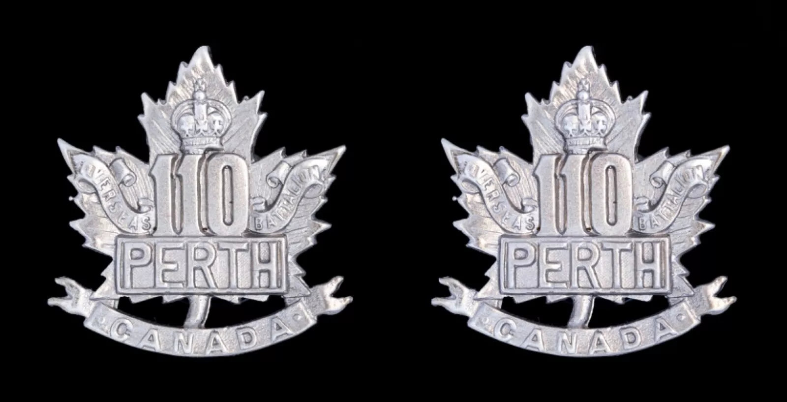 110th Canadian Perth Battalion CEF Collar Badges Hallmarked Silver