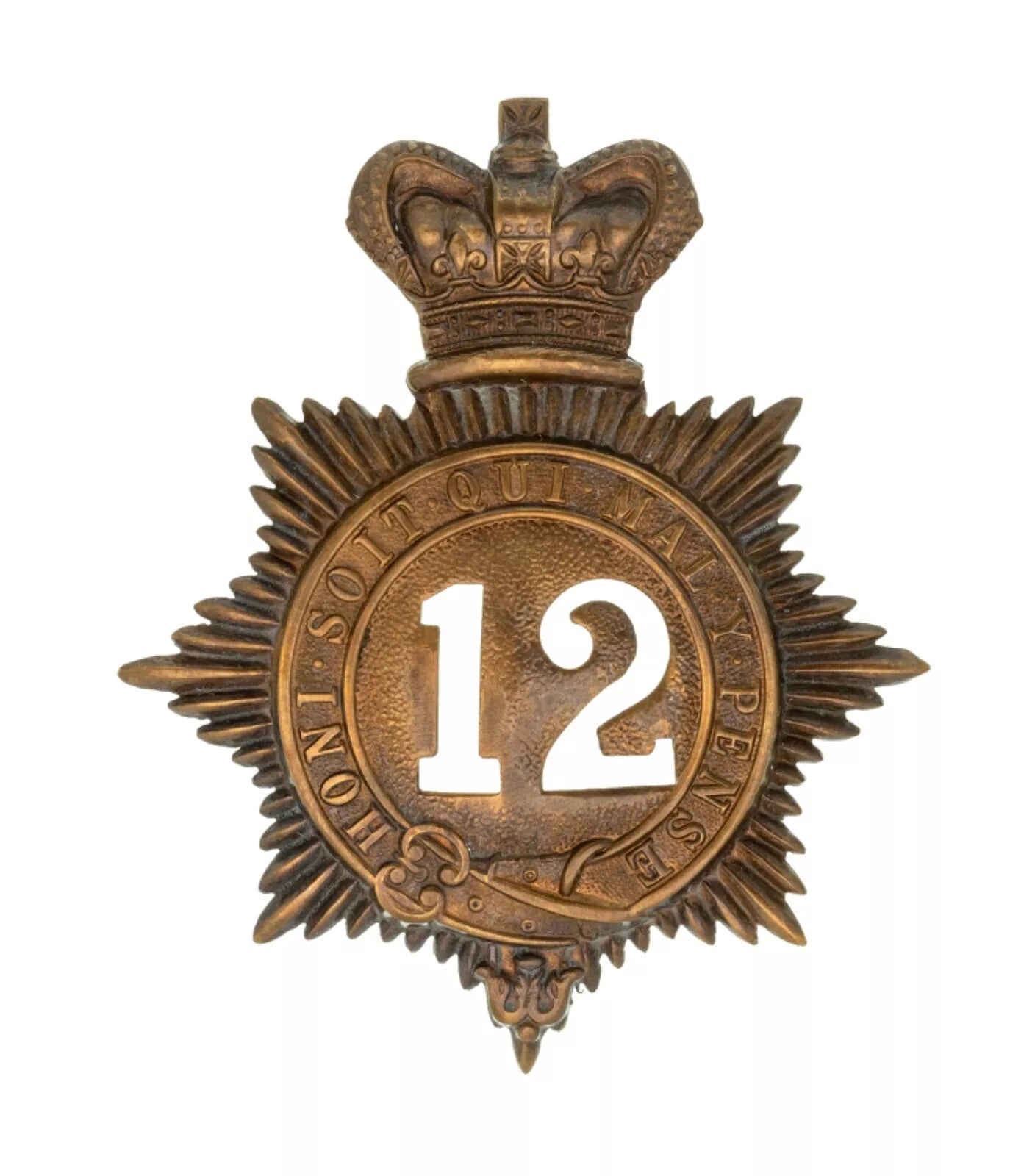 12th Suffolk Regiment Quilted Shako Plate Brass Metal