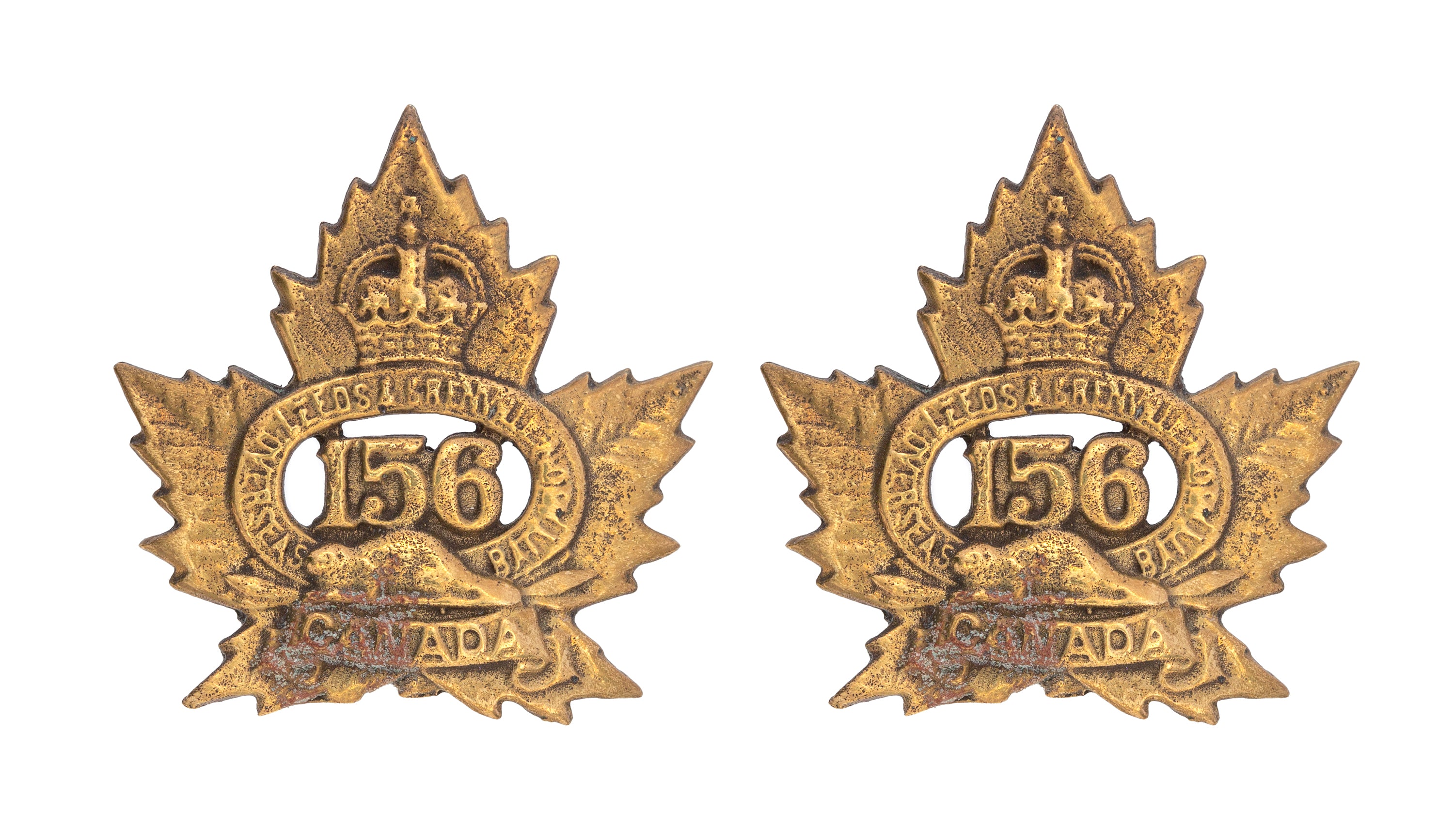 156th Canadian Leeds & Grenville Battalion Collar Badges Brass Metal