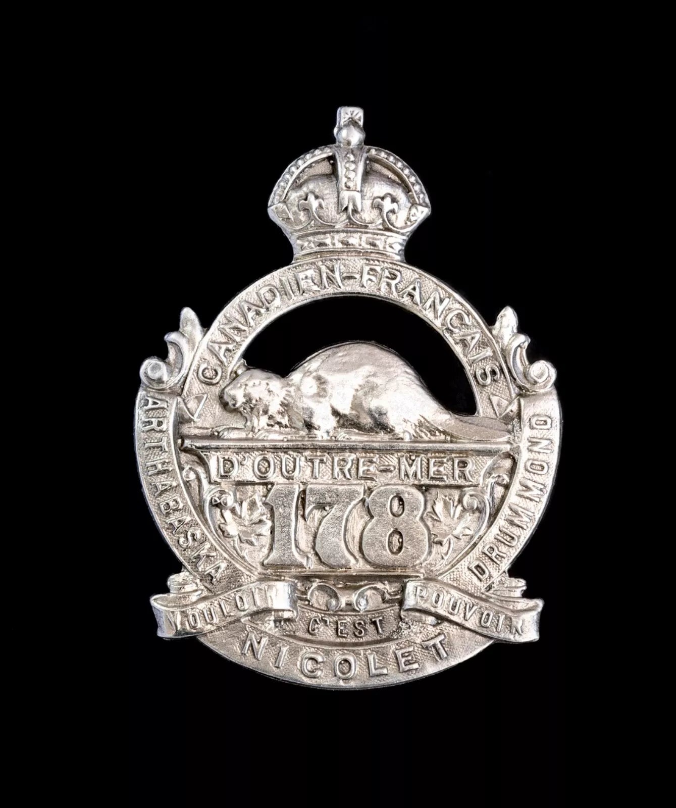 178th Canadian Quebec Infantry Battalion CEF Cap Badge Hallmarked Silver