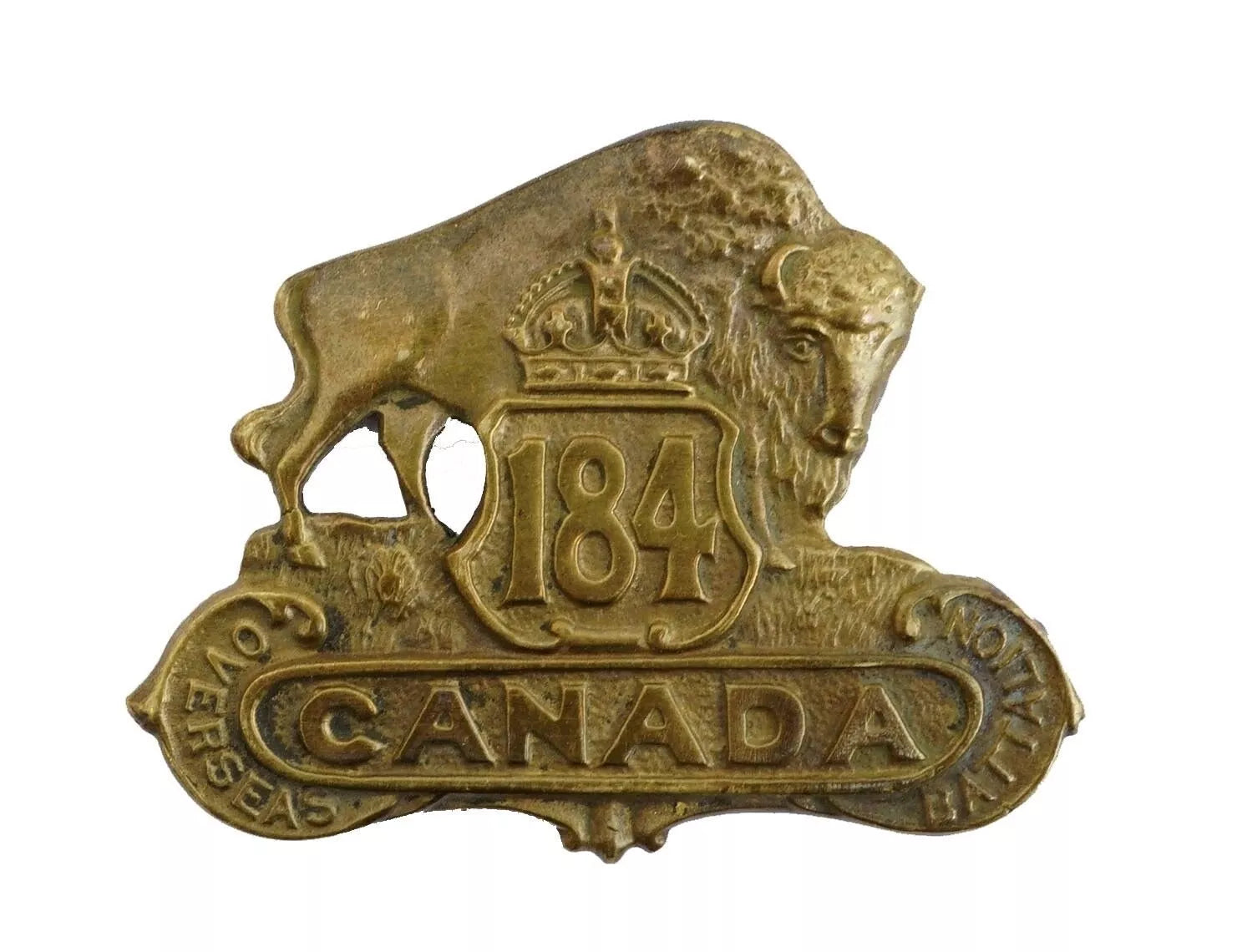 184th Overseas Battalion Canadian Cap Badge Brass Metal