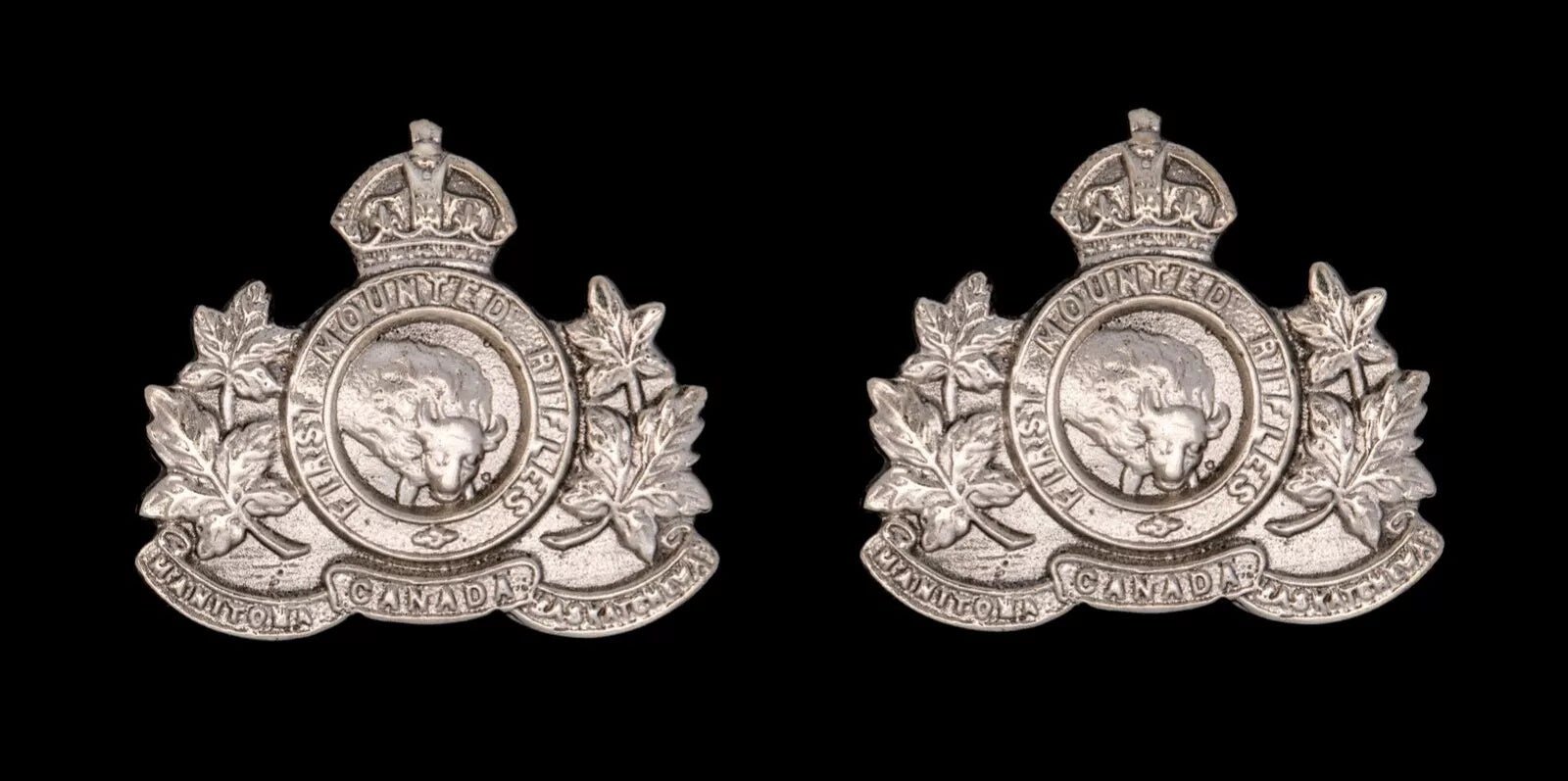 1st Canadian Mounted Rifles Collar Badges Hallmarked Silver