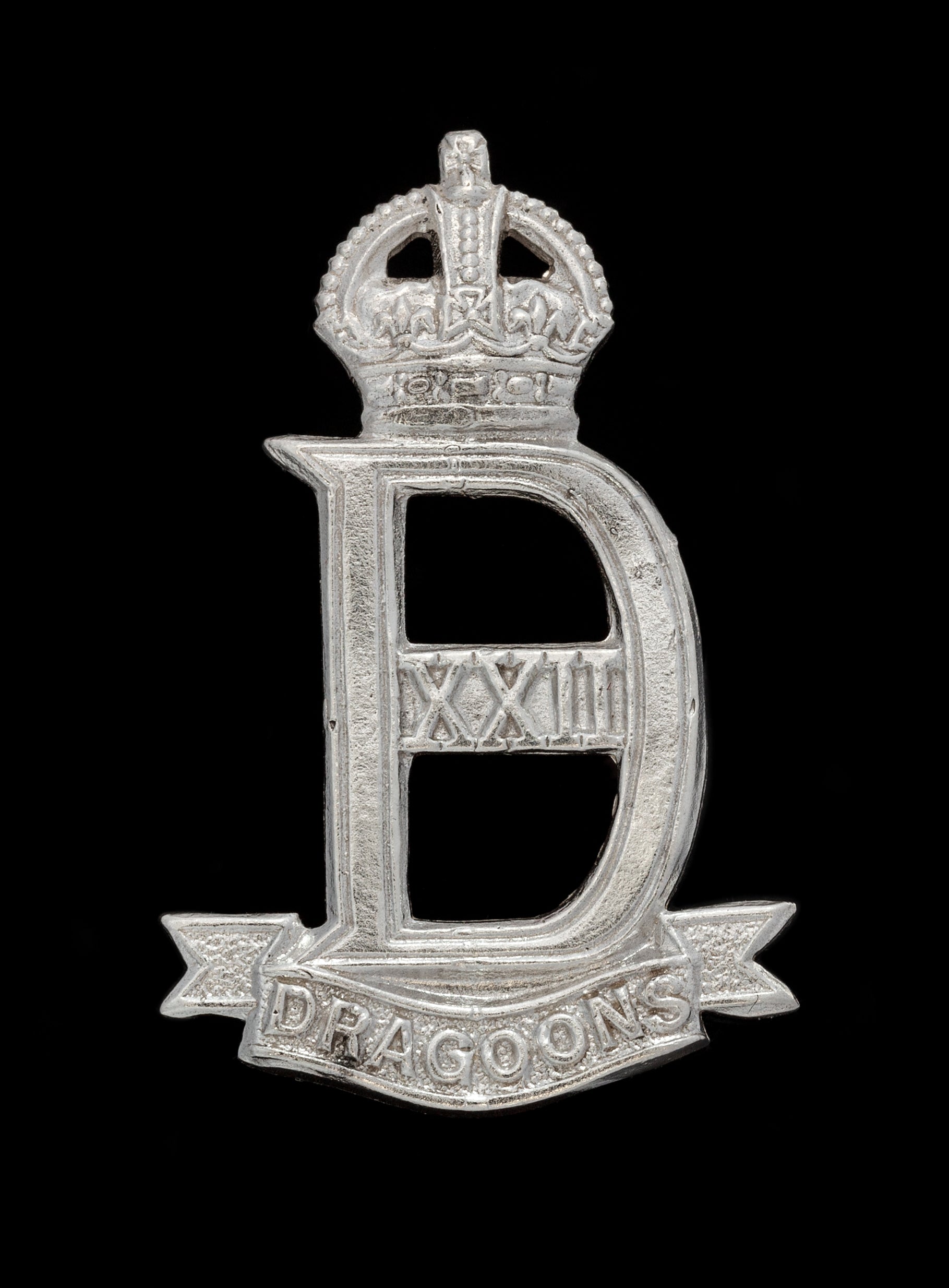 22nd Dragoons Cap Badge White Metal K.C Hallmarked Silver