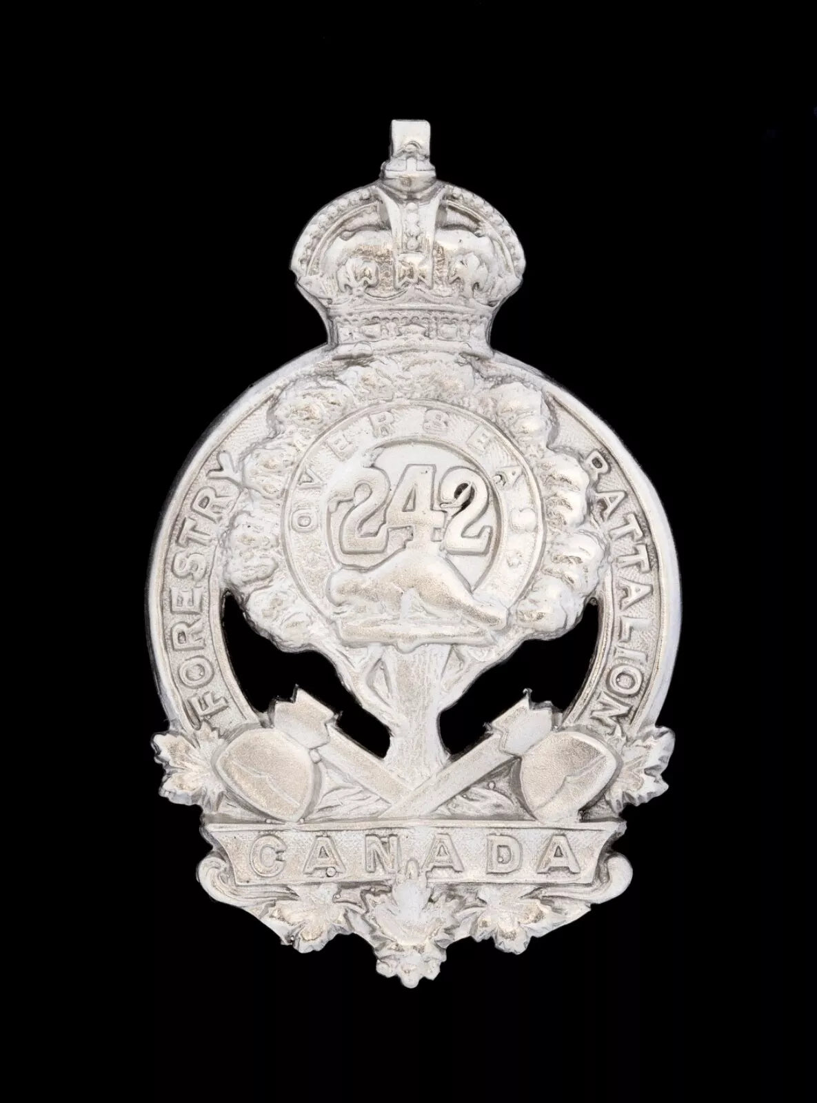 242nd Canadian Forestry Battalion CEF Cap Badge Hallmarked Silver
