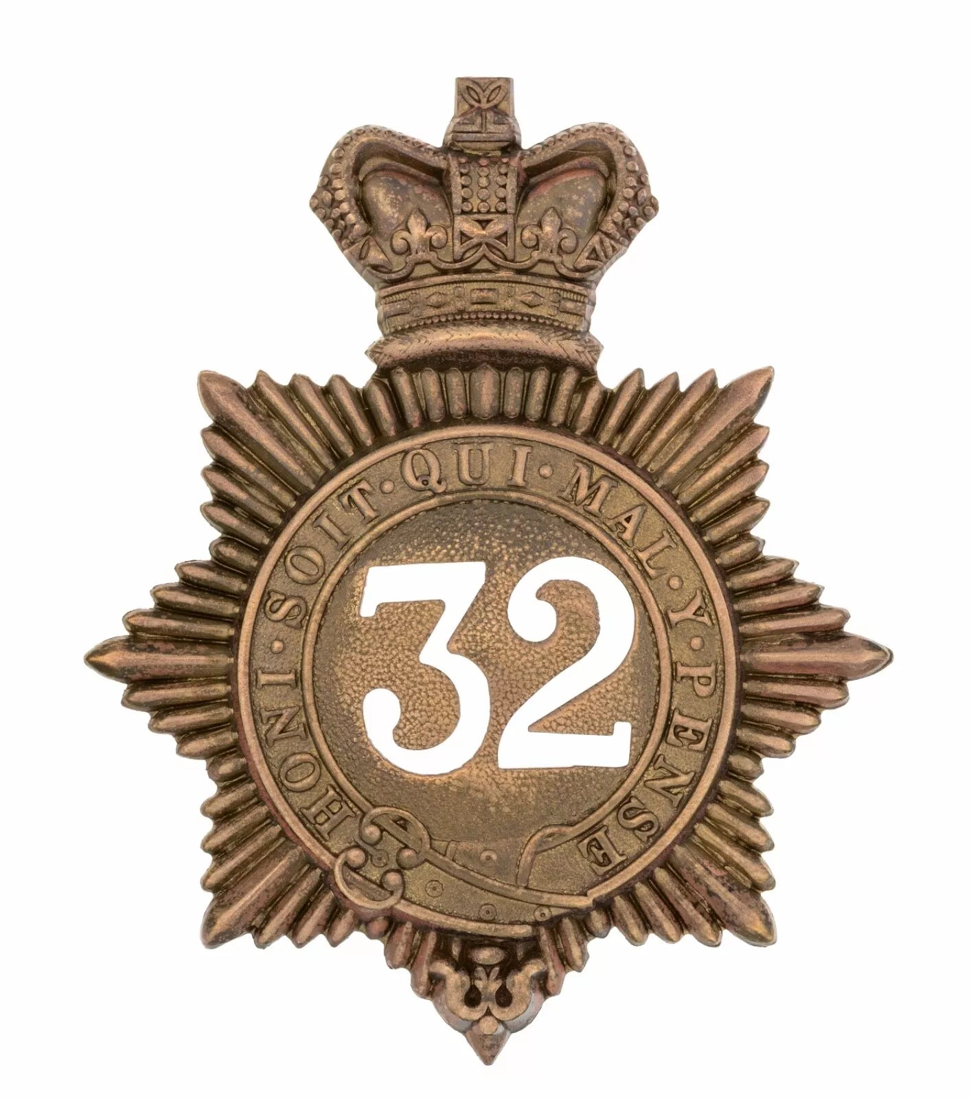 32nd Duke Of Cornwall Light Infantry Regiment Quilted Shako Plate Brass Metal
