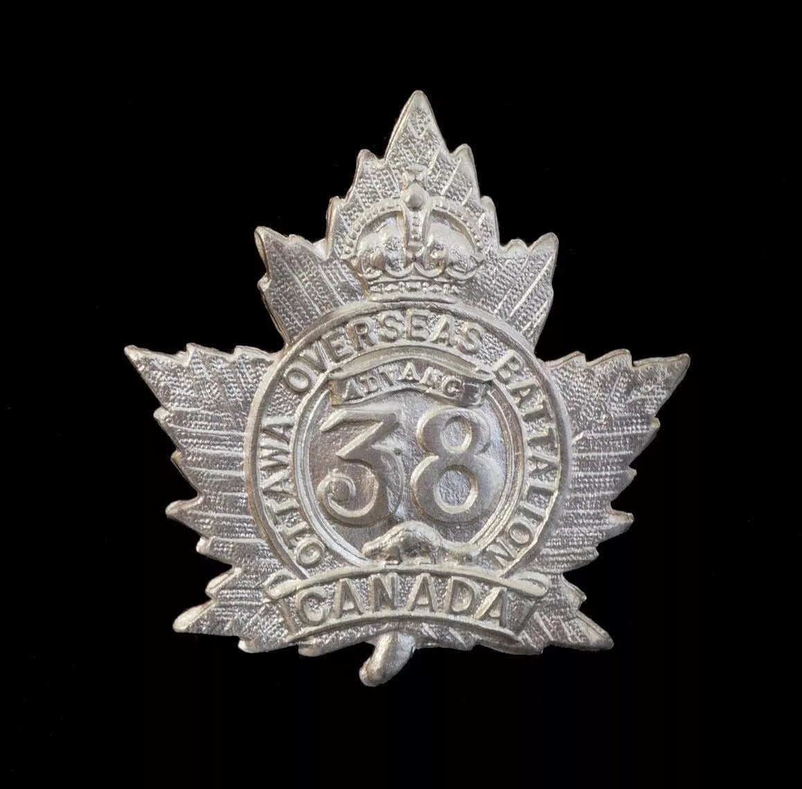 38th Canadian Ottawa Overseas Battalion Cap Badge Hallmarked Silver