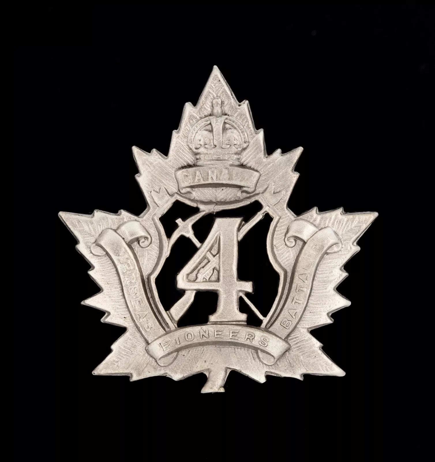 4th Canadian Pioneers Overseas Battalion Cap Badge Hallmarked Silver