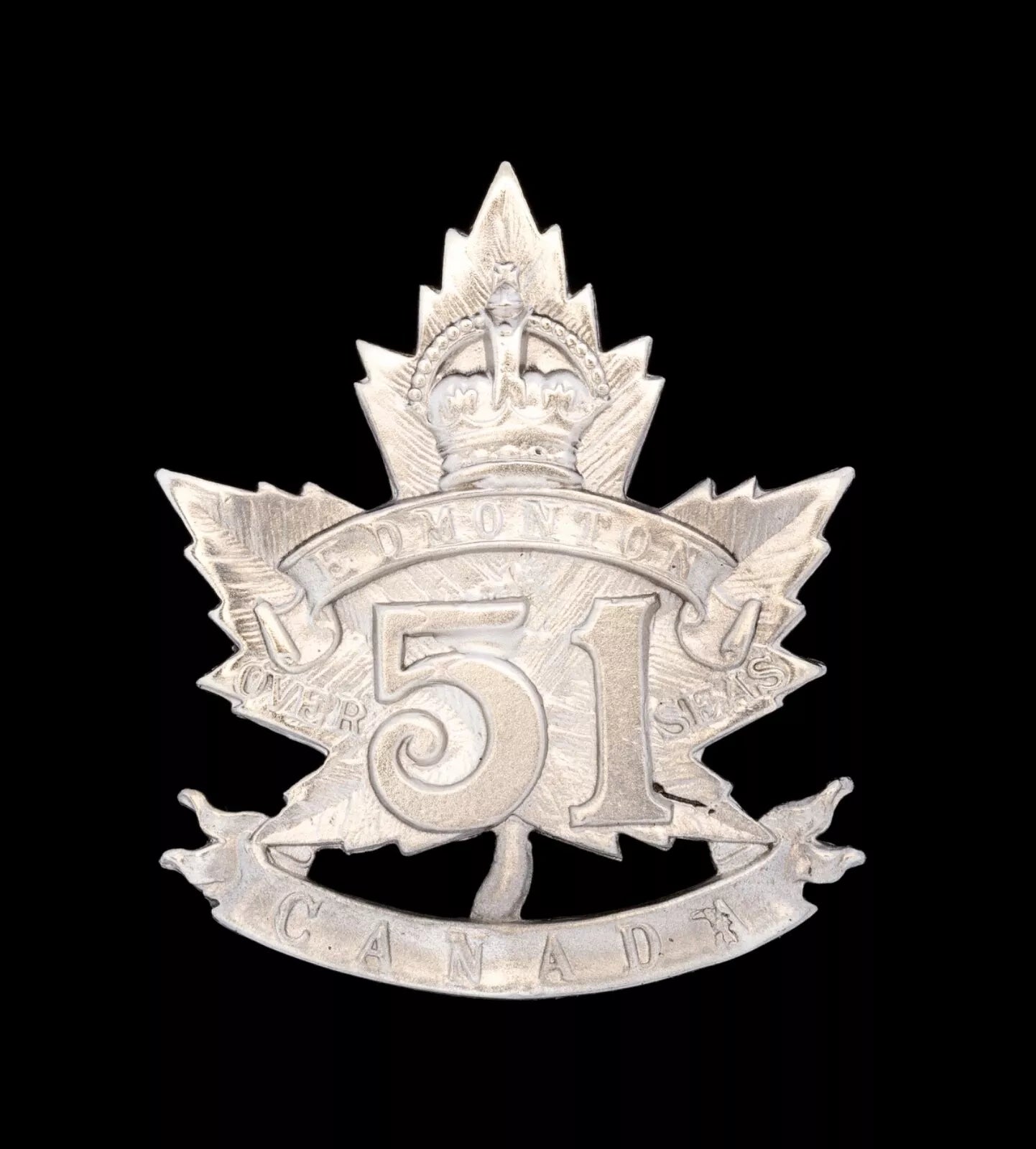 51st Canadian Edmonton Battalion CEF Cap Badge Hallmarked Silver