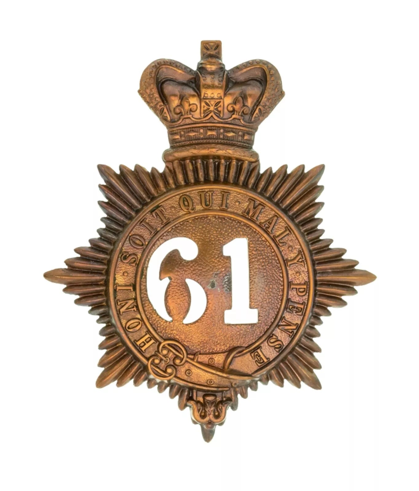 61st Gloucestershire 2nd Battalion Regiment Quilted Shako Plate Brass Metal