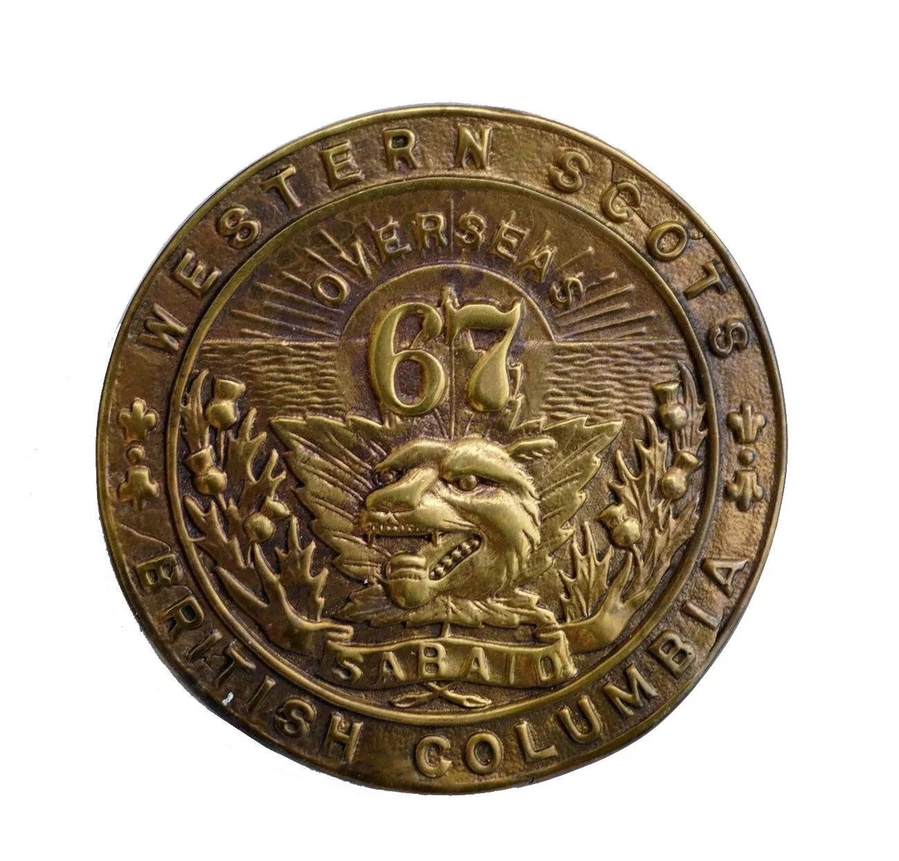 67th Canadian Battalion Western Scots Cap Badge Brass Metal