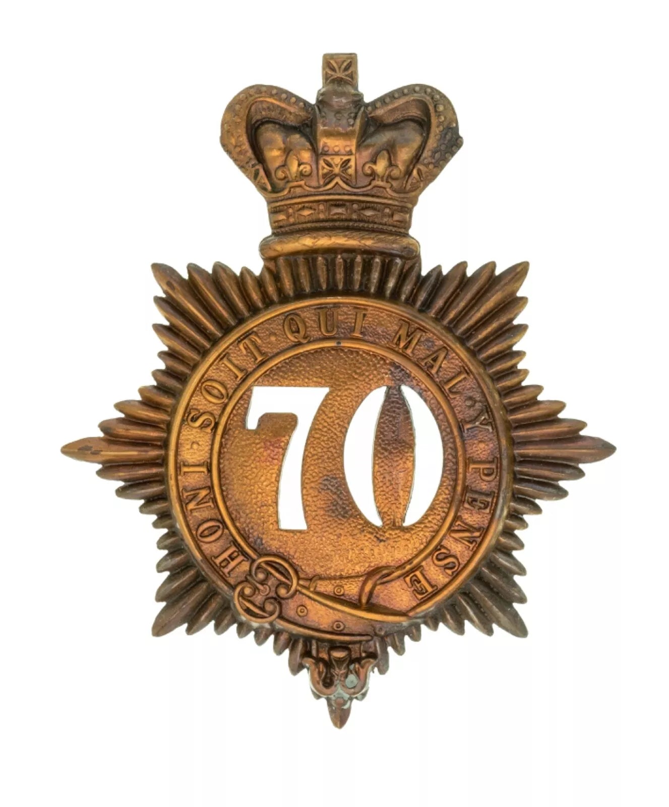 70th East Surrey Regiment Quilted Shako Plate Brass Metal