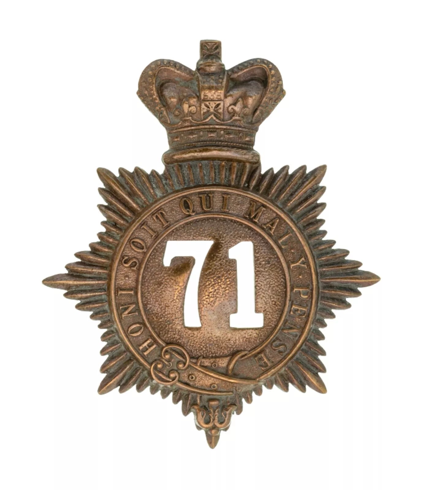 71st Highland Light Infantry Regiment Quilted Shako Plate Brass Metal