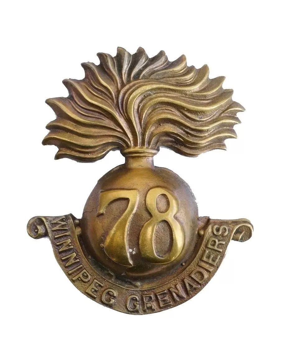78th Canadian Winnipeg Grenadiers Cap Badge Brass metal