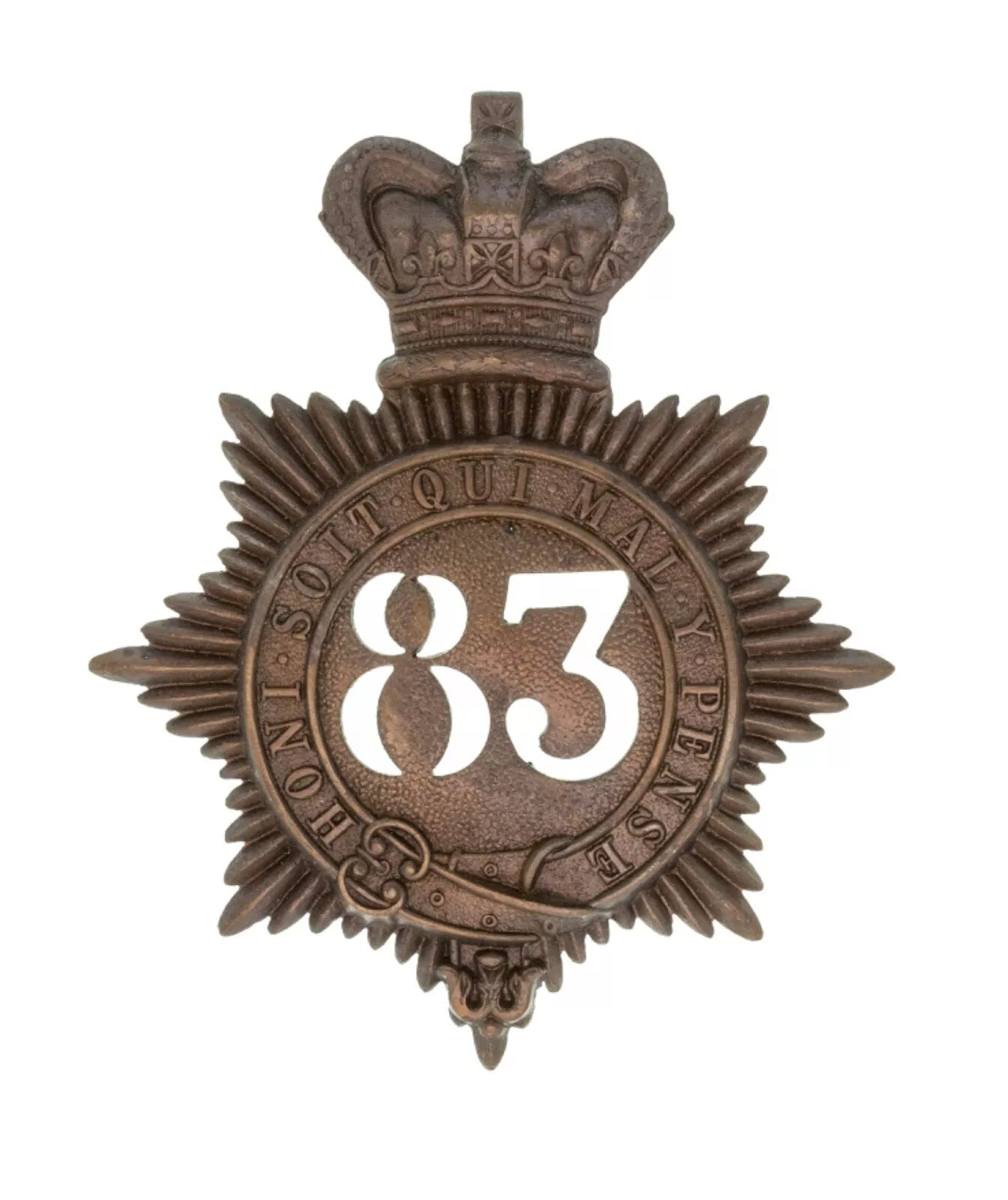 83rd Royal Irish Rifles 2nd Battalion Quilted Shako Plate Brass Metal