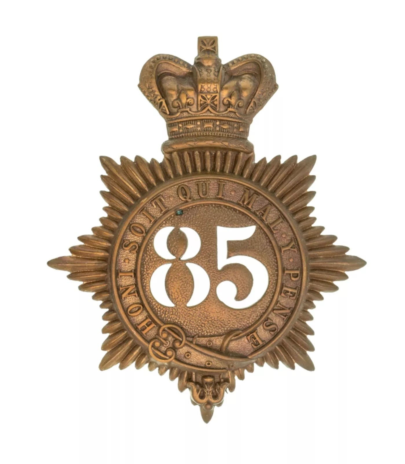85th Shropshire Light Infantry 2nd Battalion Quilted Shako Plate Brass Metal