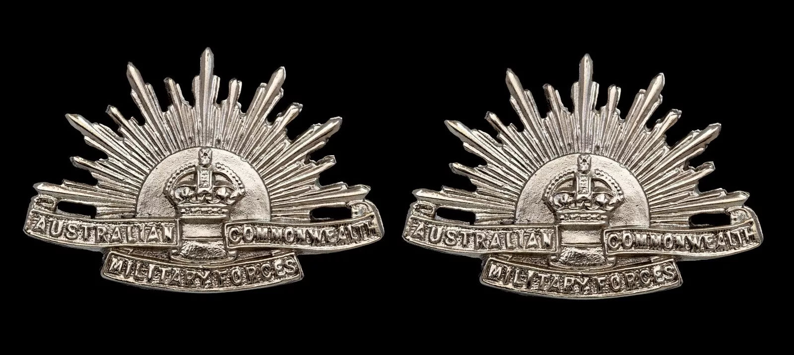 Australian Commonwealth Military Forces Collar Badges Hallmarked Silver