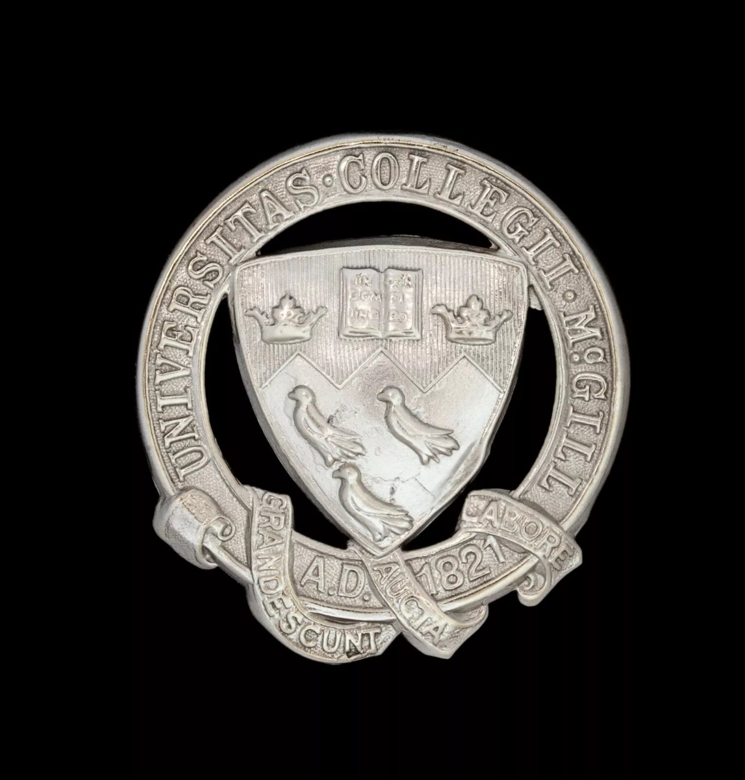 Canadian NO1 University Company MC Grill Cap Badge Hallmarked Silver