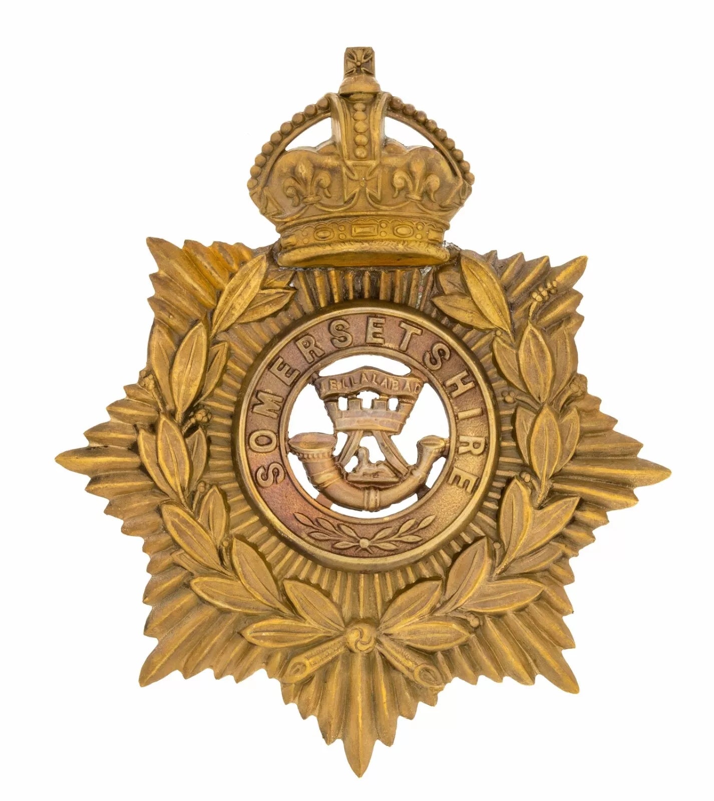 Kings Crown Helmet Plate & Somersetshire Centre Brass Metal