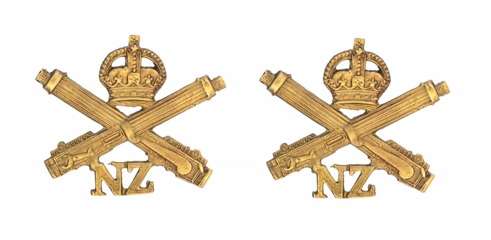 Machine Gun New Zealand Collar Badges Pair Brass Metal