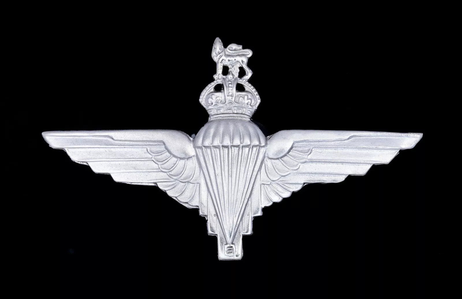 Upon a spread of wings an open Parachute above the royal crest.