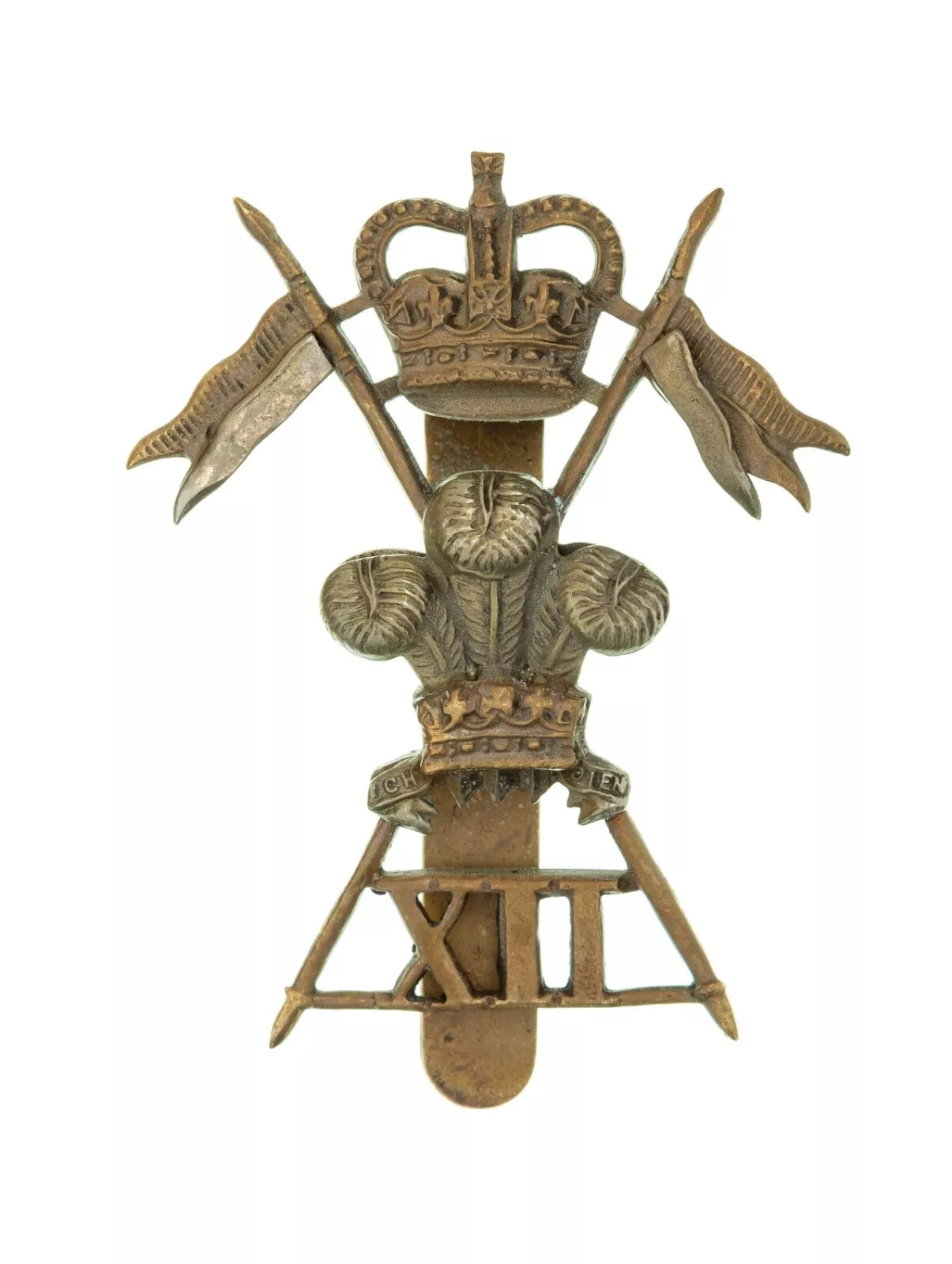 Queens Crown 12th Lancers Cap Badge Bi Metal.