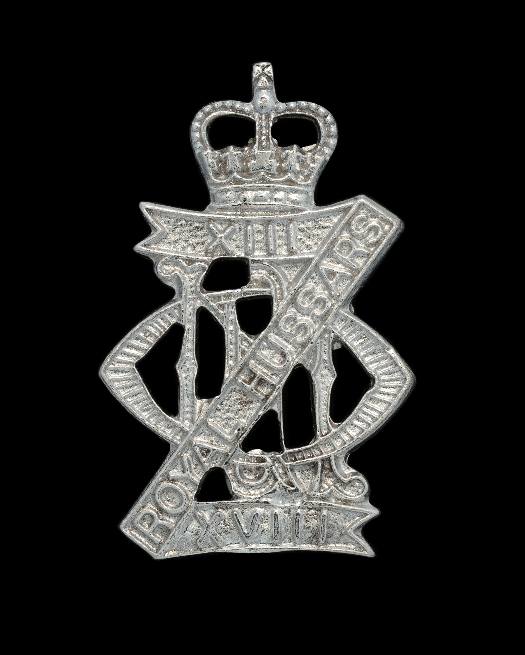 Queens Crown 13/18th Royal Hussars Cap Badge Hallmarked Silver