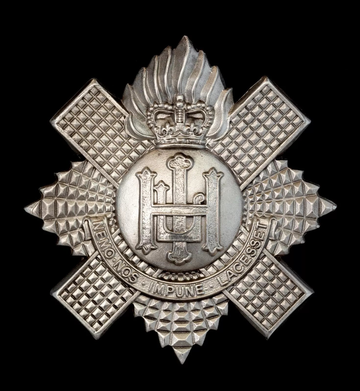 Queens Crown Highlanders Light Infantry Pipers Badge Hallmarked Silver