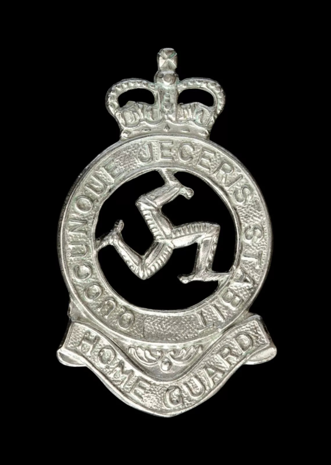 Queens Crown Isle of Man Home Guard Cap Badge Hallmarked Silver
