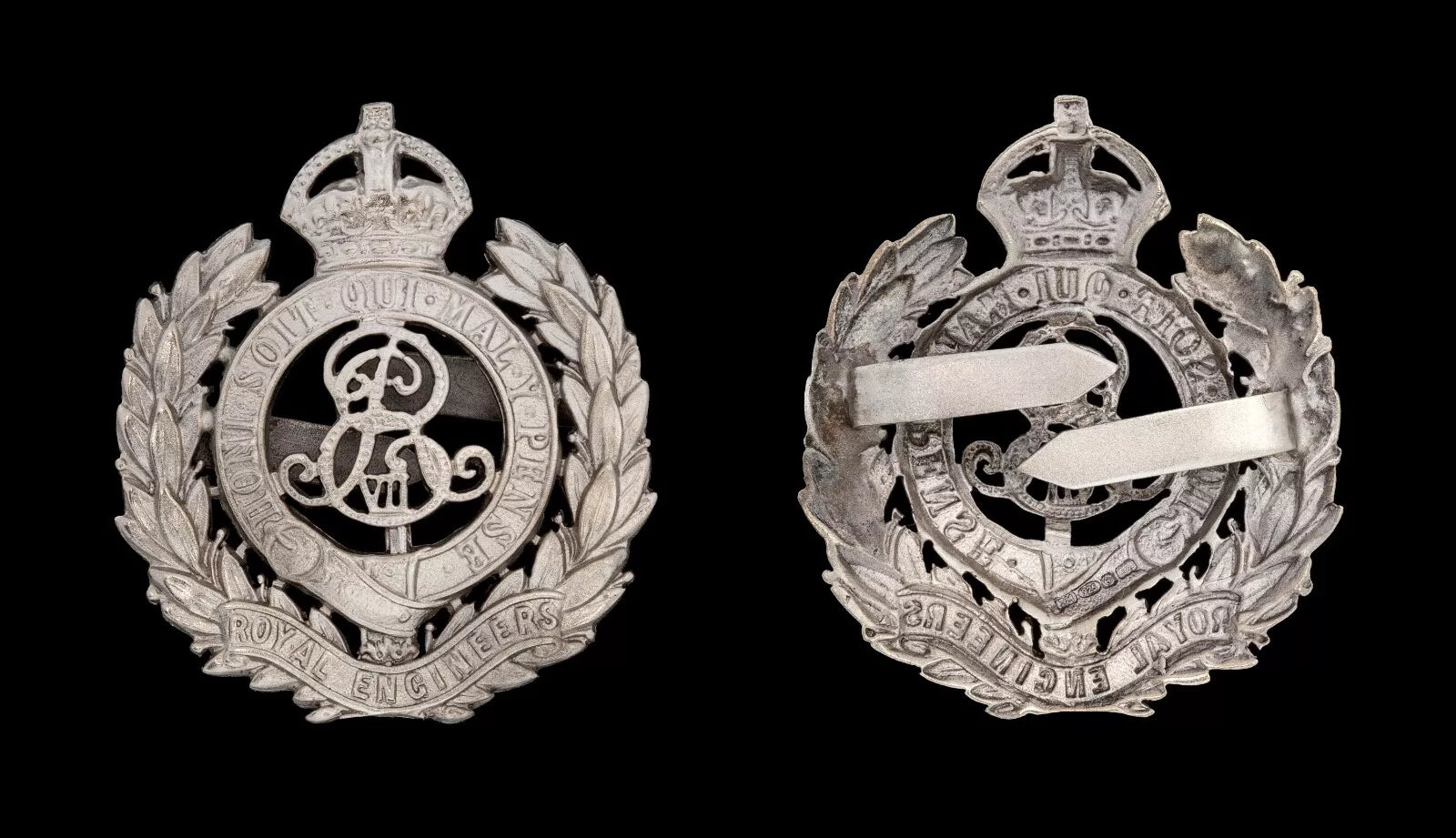 Royal Engineers Edward VII Cap Badge Officers Hallmarked Silver