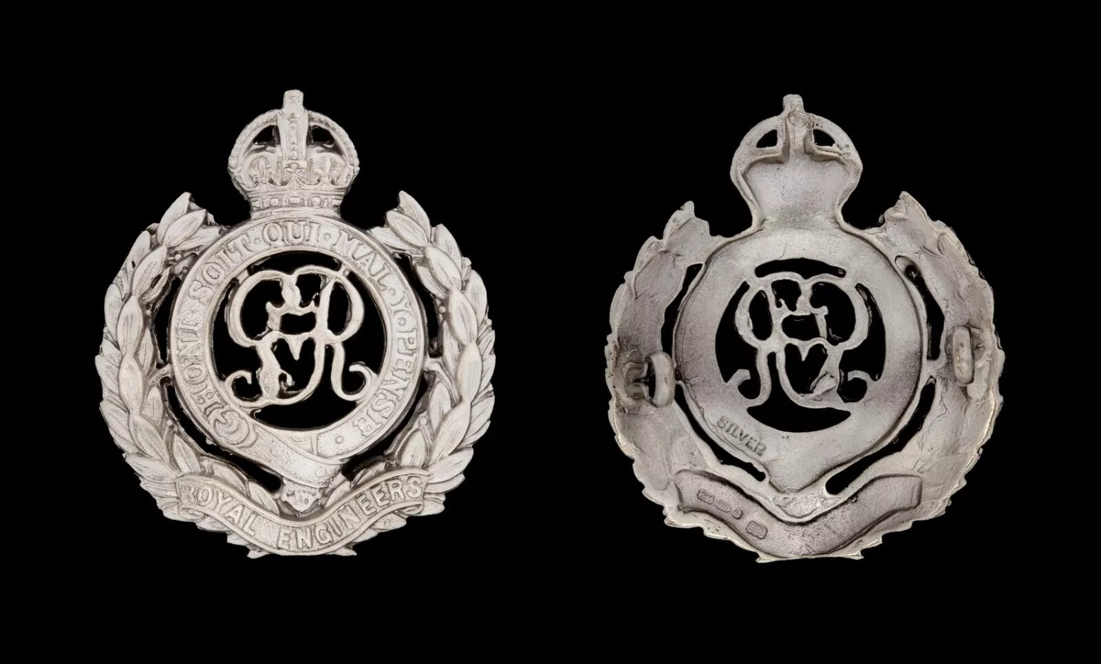 Royal Engineers GVR Cap Badge Hallmarked Silver