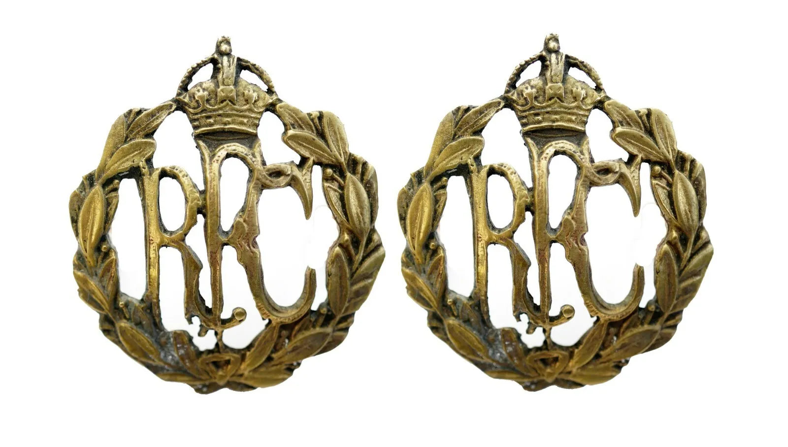 Royal Flying Corps Collar Badges Pair Brass Metal