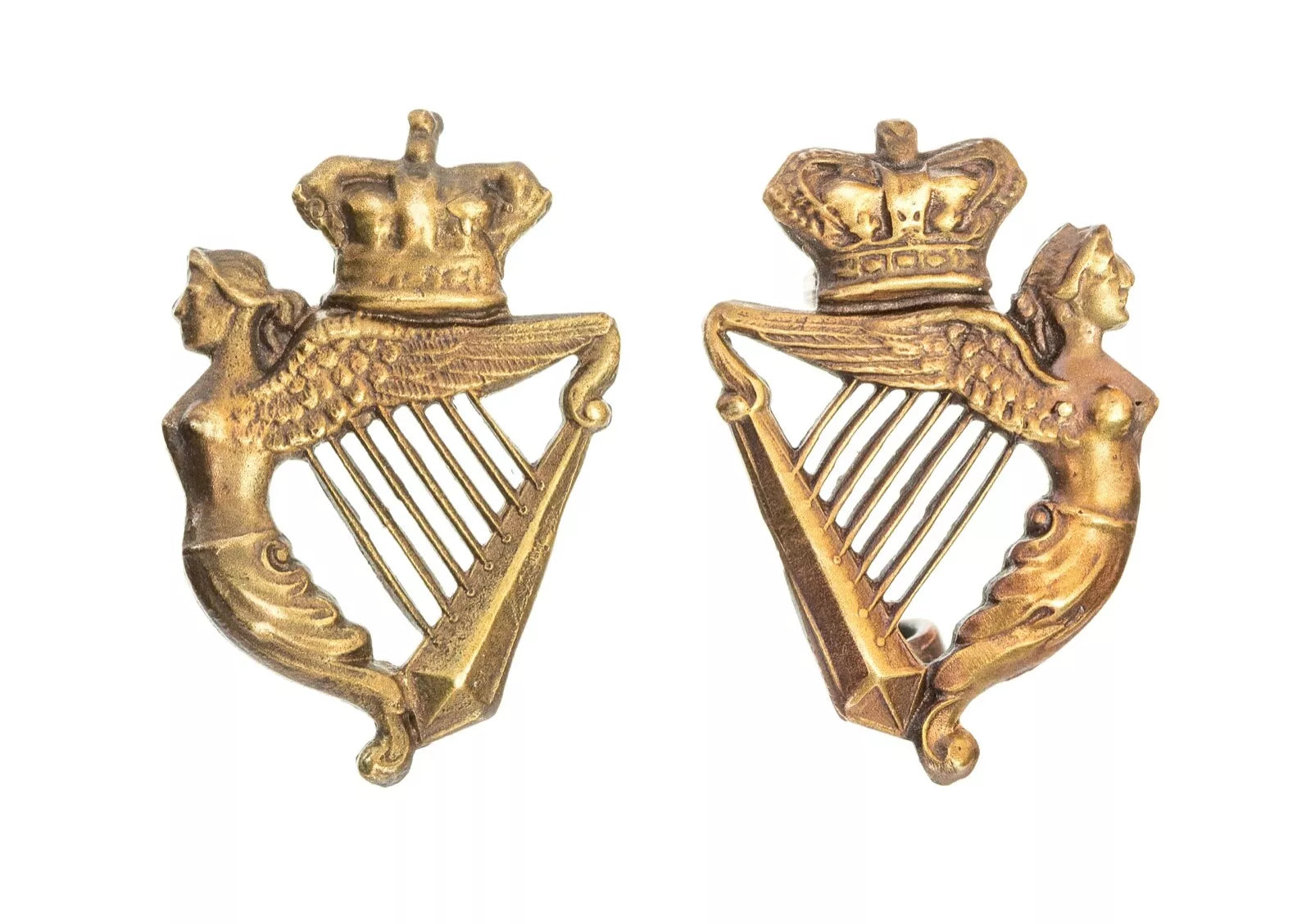 Royal Irish Hussars Collar Badges Pair Brass Metal
