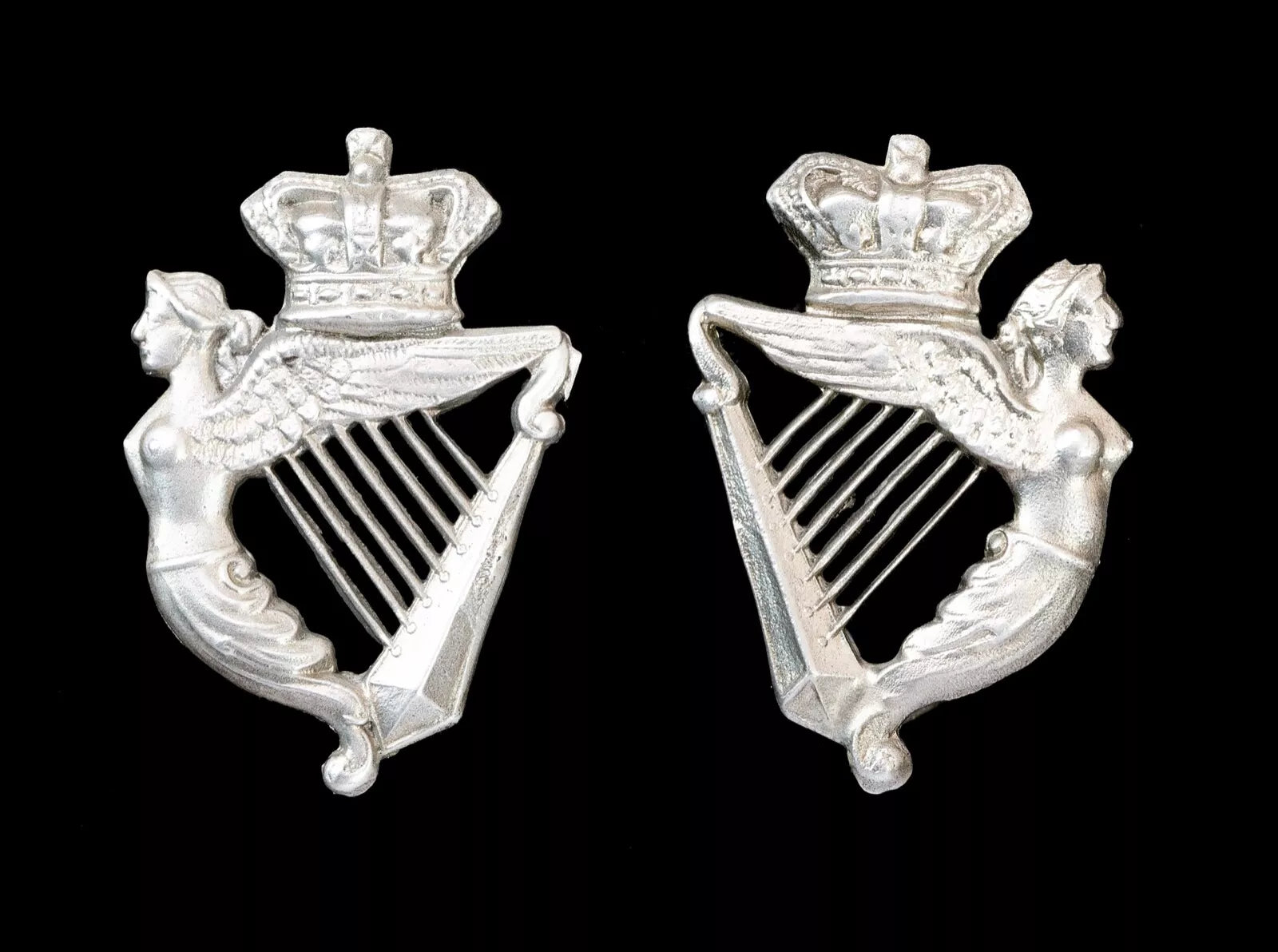 Royal Irish Hussars Collar Badges Pair Hallmarked Silver