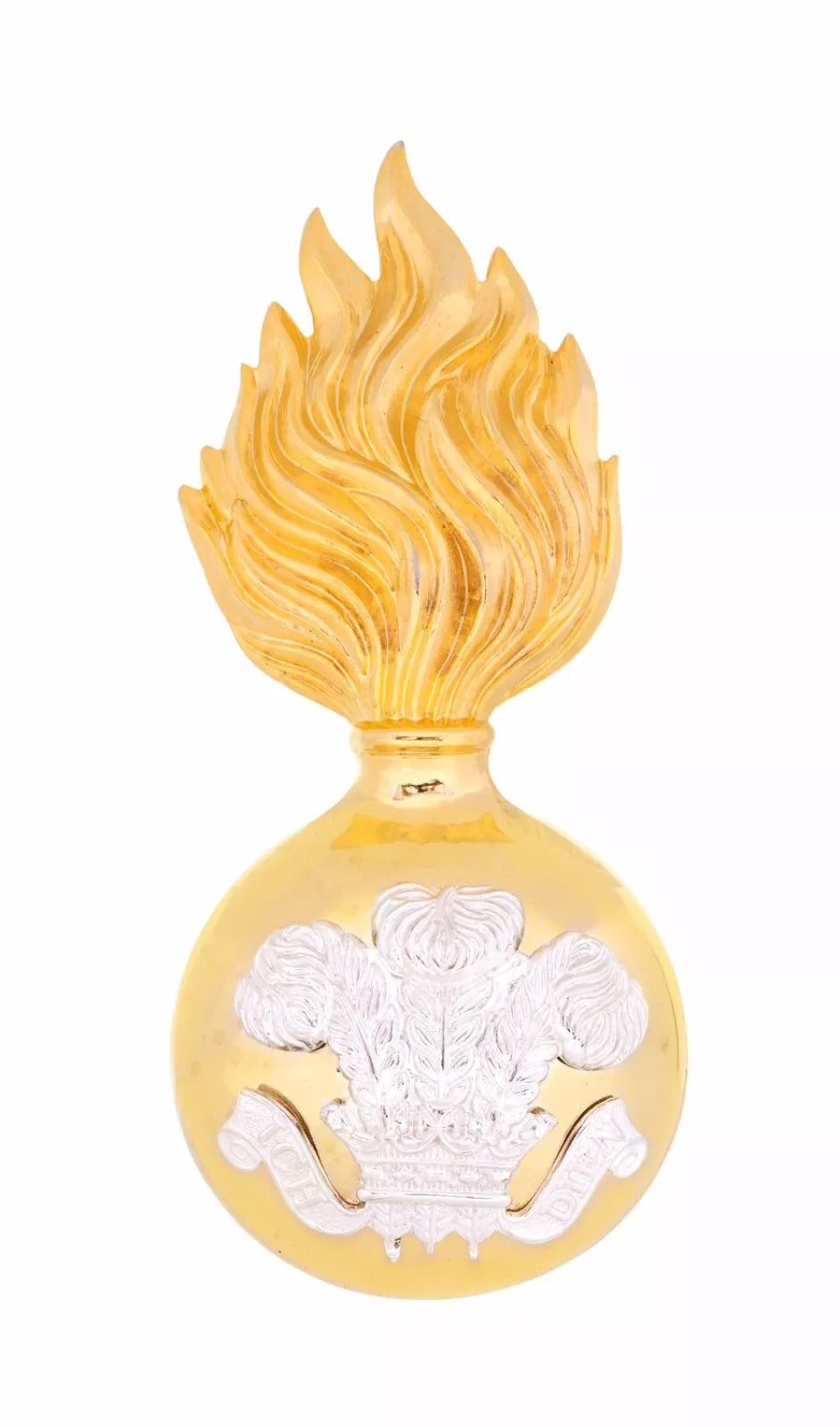 Royal Welsh Fusiliers 2 part Fur Cap Badge Gilt & Silver plate