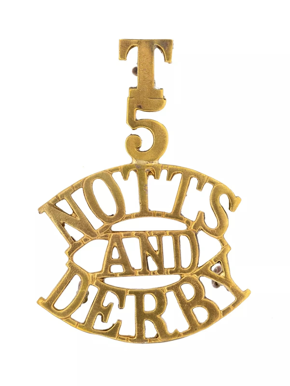 T.5 Notts And Derby Shoulder Title Brass Metal