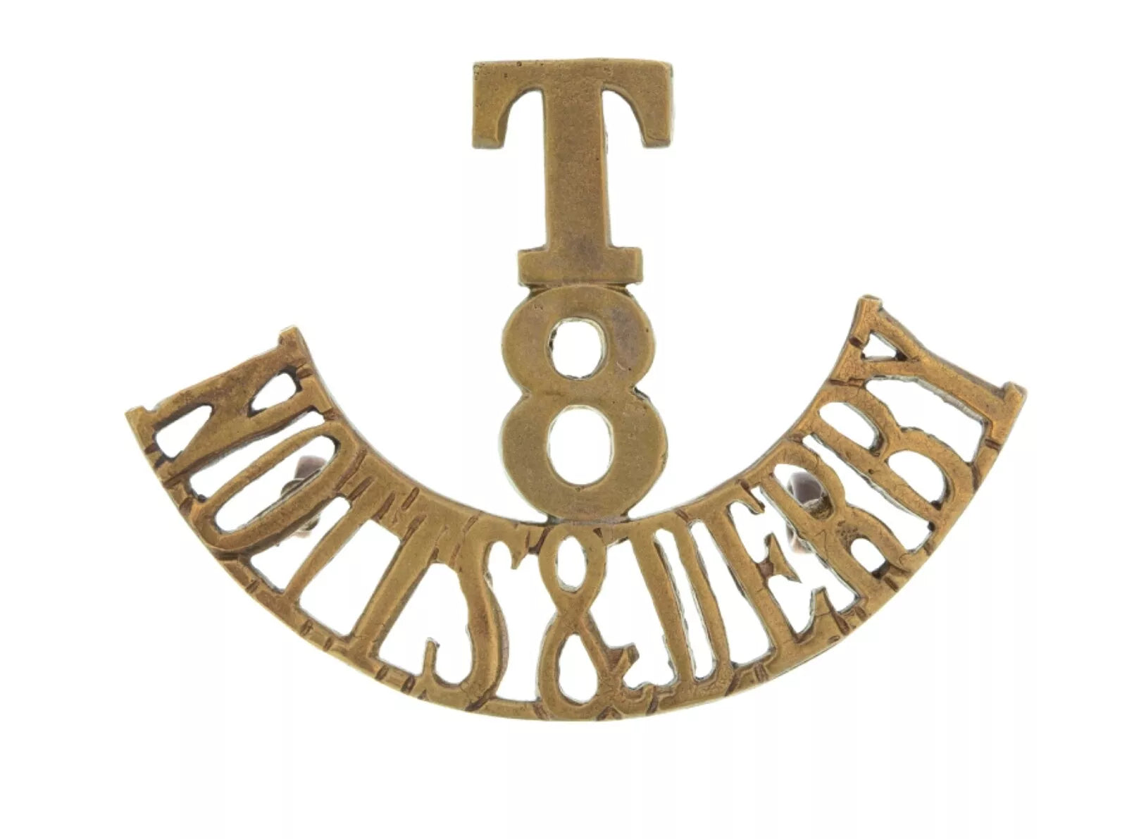 T 8 Notts & Derby Shoulder Title Brass Metal