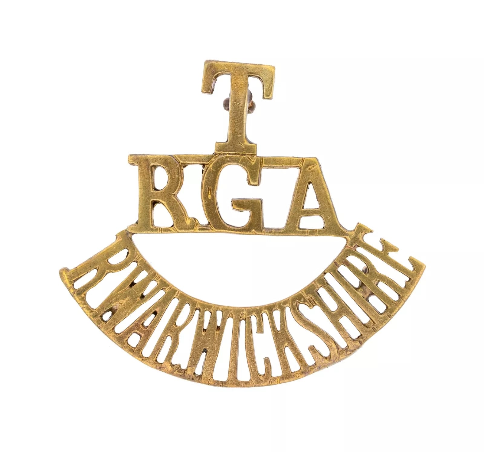 T R.G.A Warwickshire Shoulder Title Brass Metal