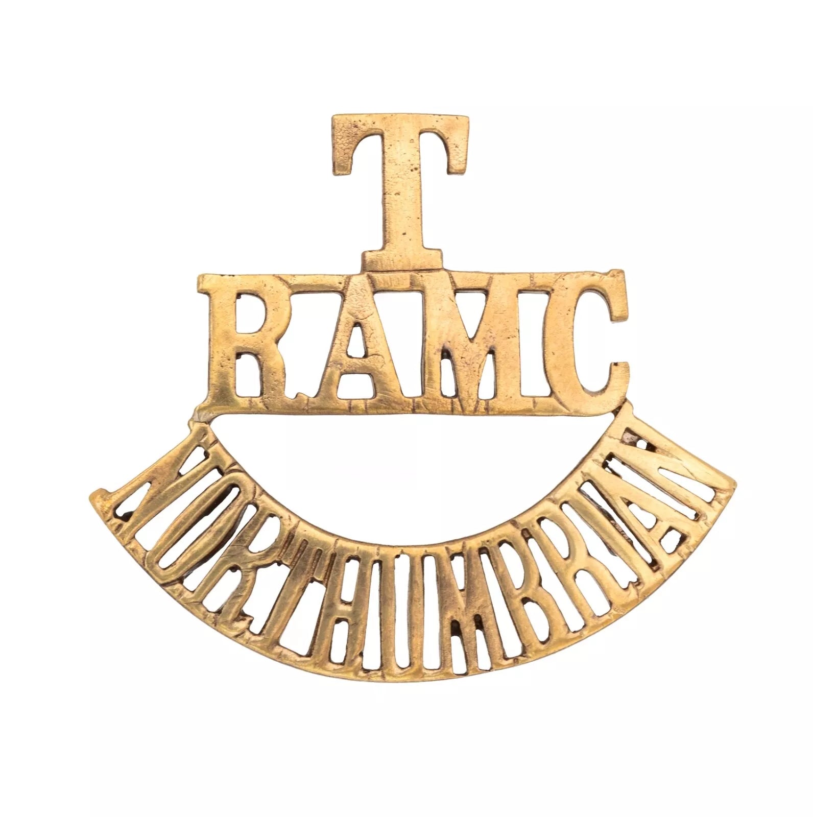 T. RAMC Northumbrian Shoulder Title Brass Metal