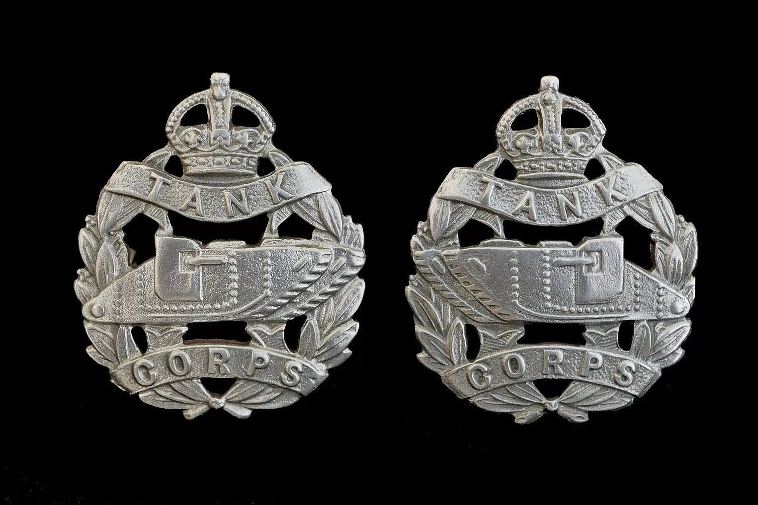 Tank Corps Collar Badges Pair Hallmarked Silver