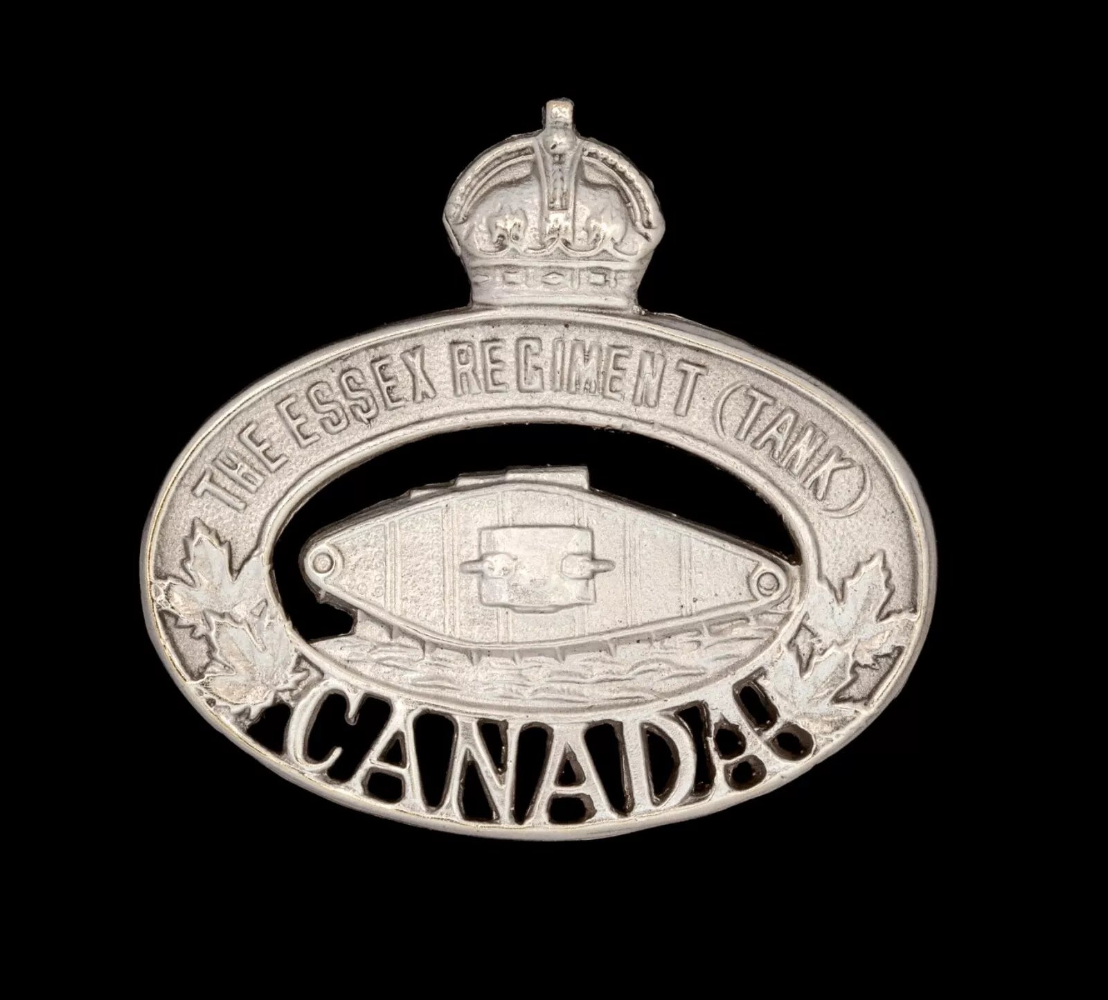The Essex Regiment Tank Canadian Cap Badge Hallmarked Silver