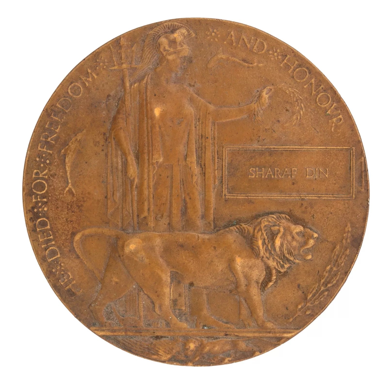 WW1 Memorial Plaque Sharaf Din Original